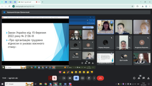 Адвокат Богдан БОРЕЦЬКИЙ наголосив на особливостях розірвання трудового договору в умовах війни. Особливу увагу приділив правам працівників на підприємствах, установах, організаціях в умовах війни. Під час лекції він озвучив чимало джерел з цієї проблематики, навів багаточисленні приклади з практики щодо підстав розірвання трудового договору в умовах війни.