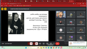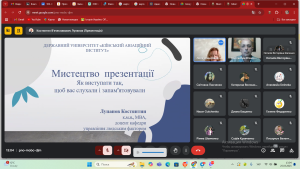 Студенти КІУтЗ КАІ спеціальностей «Право» та «Журналістика» взяли участь у трьох вебінарах: «Менеджмент зв’язків з політичною реальністю» – спікер Андрій Круглашов, кандидат політичних наук, член європейської асоціації політичних консультантів, «Невидимий вплив: як фіксери формують медійну картину світу» – спікер Володимир Бірюков викладач кафедри журналістики, реклами та зв’язків з громадськістю, міжнародний журналіст, теле та радіоведучий, письменник, волонтер, фіксер, «Мистецтво переконливої презентації: як виступати так, щоб Вас слухали і запам’ятовували» – спікер Костянтин Лупанов, кандидат медичних наук, доцент кафедри управління людським фактором.