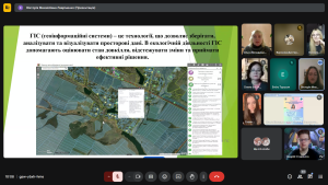 Спікером виступила кандидатка біологічних наук, доцентка кафедри екології та туризму, заступник декана з наукової роботи та міжнародних зв’язків природничого факультету УДУ імені Михайла Драгоманова Вікторія ЛАВРИНЕНКО. Тема гостьової лекції «Застосування геоінформаційних систем в екологічній діяльності». Захід розкрив перспективи поєднання екології та програмування.